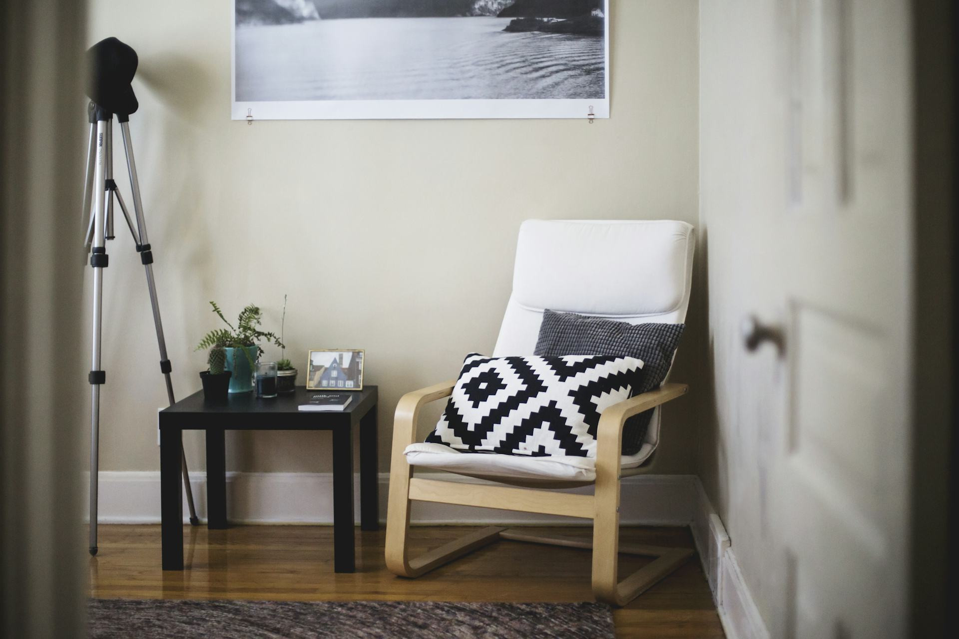 Planter bringer liv og friskhed ind i ethvert rum. En grøn plante ved siden af lænestolen kan skabe balance og ro. Vælg en plante, der trives i rummets lysforhold – for eksempel en fredslilje, monstera eller pilea.